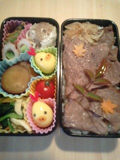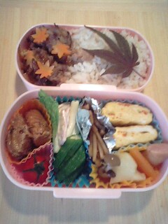 今日のお弁当は、大阪城の植木市で買った『ノムラもみじ』を添えてみました。