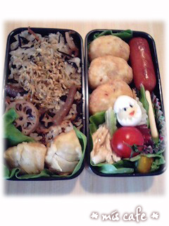ご飯はプチ握りにして、リンゴを入れてみました★