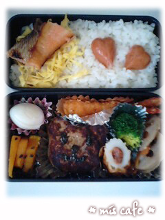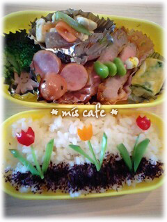 シャメは今日(3月8日)のお弁当 これでも全然恥ずかしくないと言うパパは一体(笑) 初日のは 『またまたぁ~ 自分で作ったんちゃいます? そんなに愛されてないでしょう~』 って周りに突っ込まれたらしい(笑) ねずみウインナーは目が難しいから改良の余地あり 豚ヒレカツ ほうれん草の玉子焼き 炒り豆腐 昨日からパパが体調不良 あまり食欲なさそうだったので 幼児用?のランチボックスを使って少なくしてます